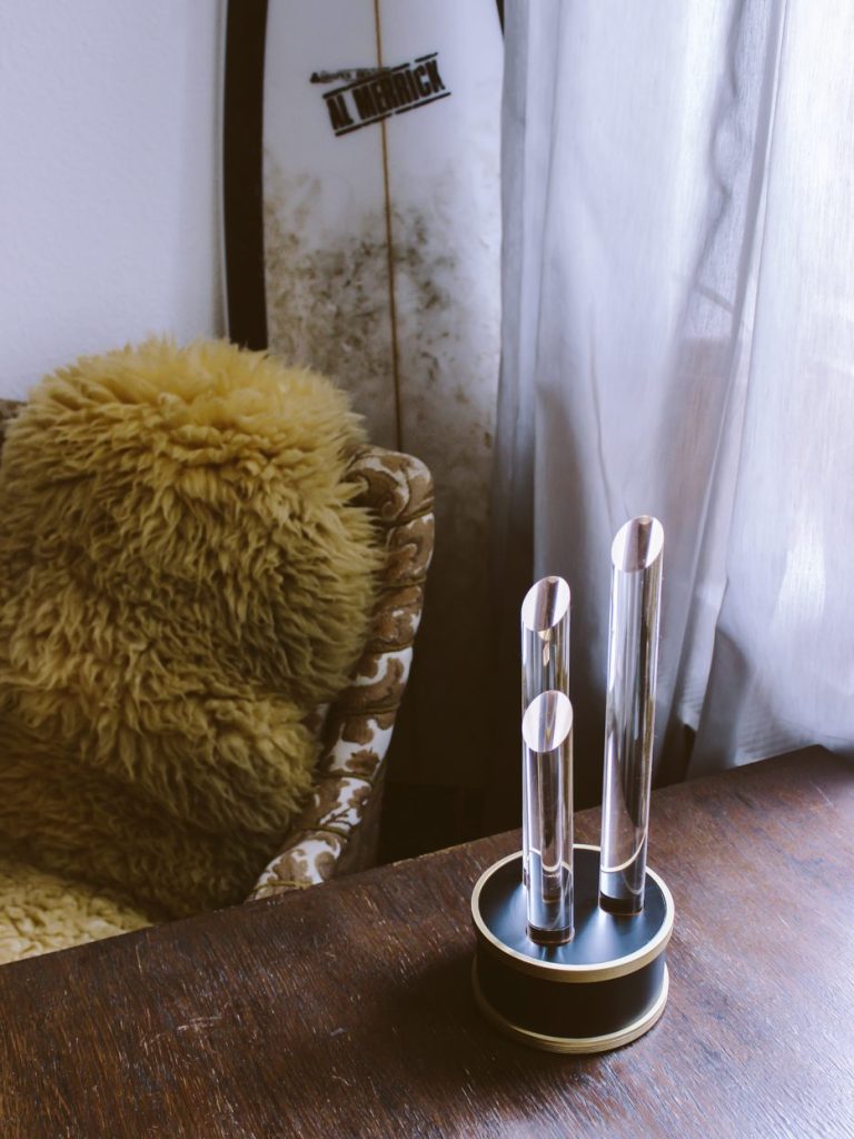 Die Tischleuchte „Beacon“ erinnert an Leuchtsäulen aus dem Science Fiction Genre, die uns mit einer anderen Welt verbinden. Sie stehen für ein Signal in den Himmel. Das Raumaccessoire zeugt ein angenehm unaufdringliches Licht für ein gemütliches Ambiente.