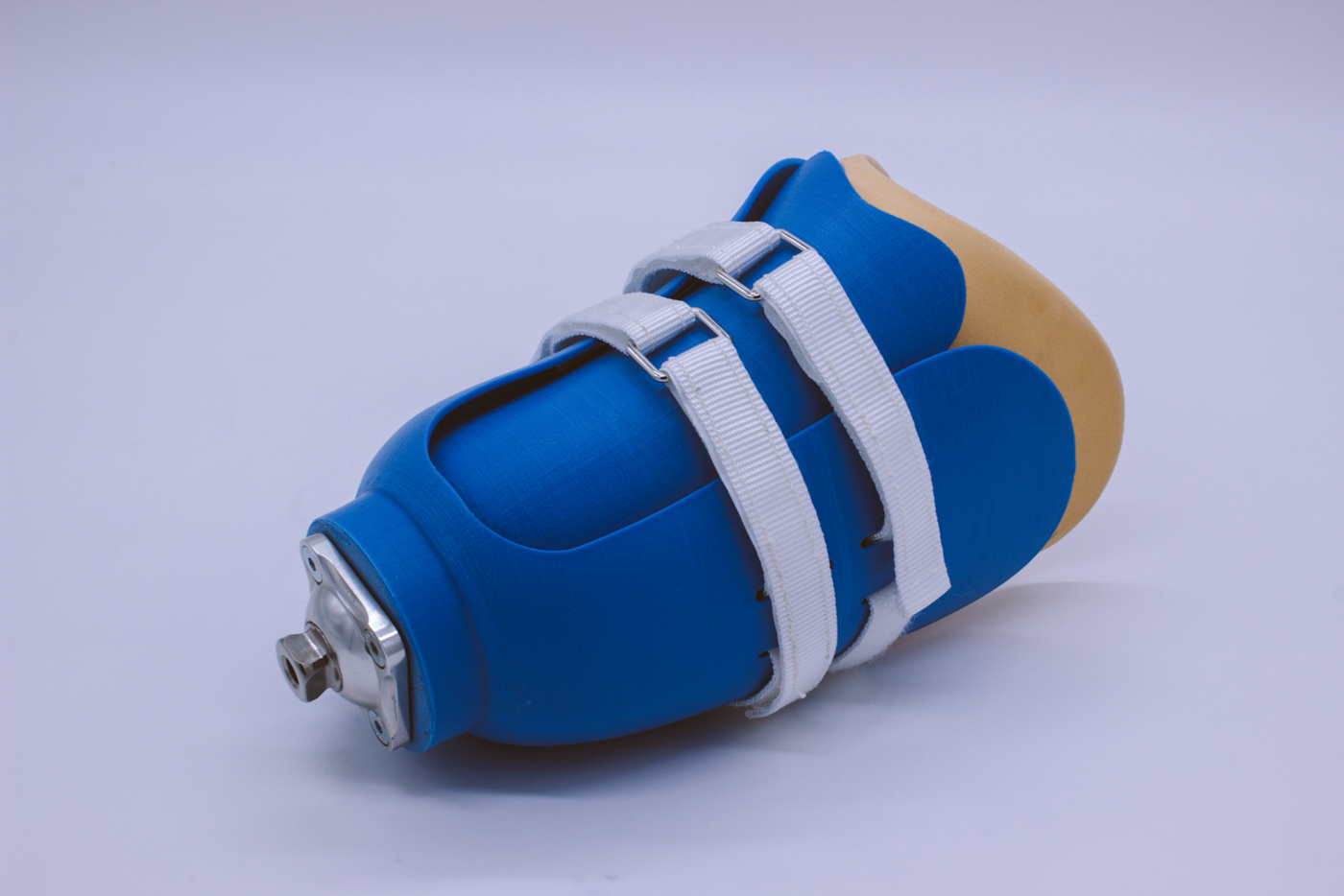 Ein Unterschenkel-Prothesenschaft aus recyceltem Kunststoff zeigt, dass innovative Prothesen nachhaltig sein können. Gefertigt im Spritzgussverfahren mit der Injection Moulding Machine von Plasticpreneur, zeichnet sich dieser Schaft durch seine naturinspirierte Form und symmetrische Konstruktion aus. Zwei Layer passen sich individuell an den Stumpf an und bieten optimalen Halt durch eine Kombination aus Gurt und Klettverschluss. Speziell für ein Projekt in Tunesien entwickelt und bereit für den Einsatz im globalen Süden, ermöglicht dieser Prothesenschaft eine kostengünstige und einfache Produktion mit leicht verfügbaren Materialien. Moderne Technologie trifft auf Nachhaltigkeit!