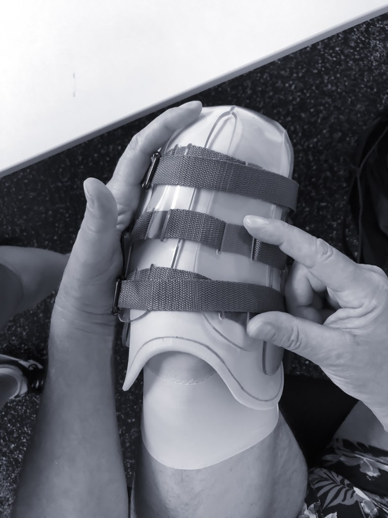 Die Formfindung erfolgte mithilfe von Pappmodellen, die schließlich zu einem 2D-Kunststoff-Modell führten, das sich durch erhitzen dreidimensional formen lässt. In enger Abstimmung mit dem Anwender wurden mehrere Prototypen getestet und kontinuierlich optimiert – für eine präzise, individuelle Passform.